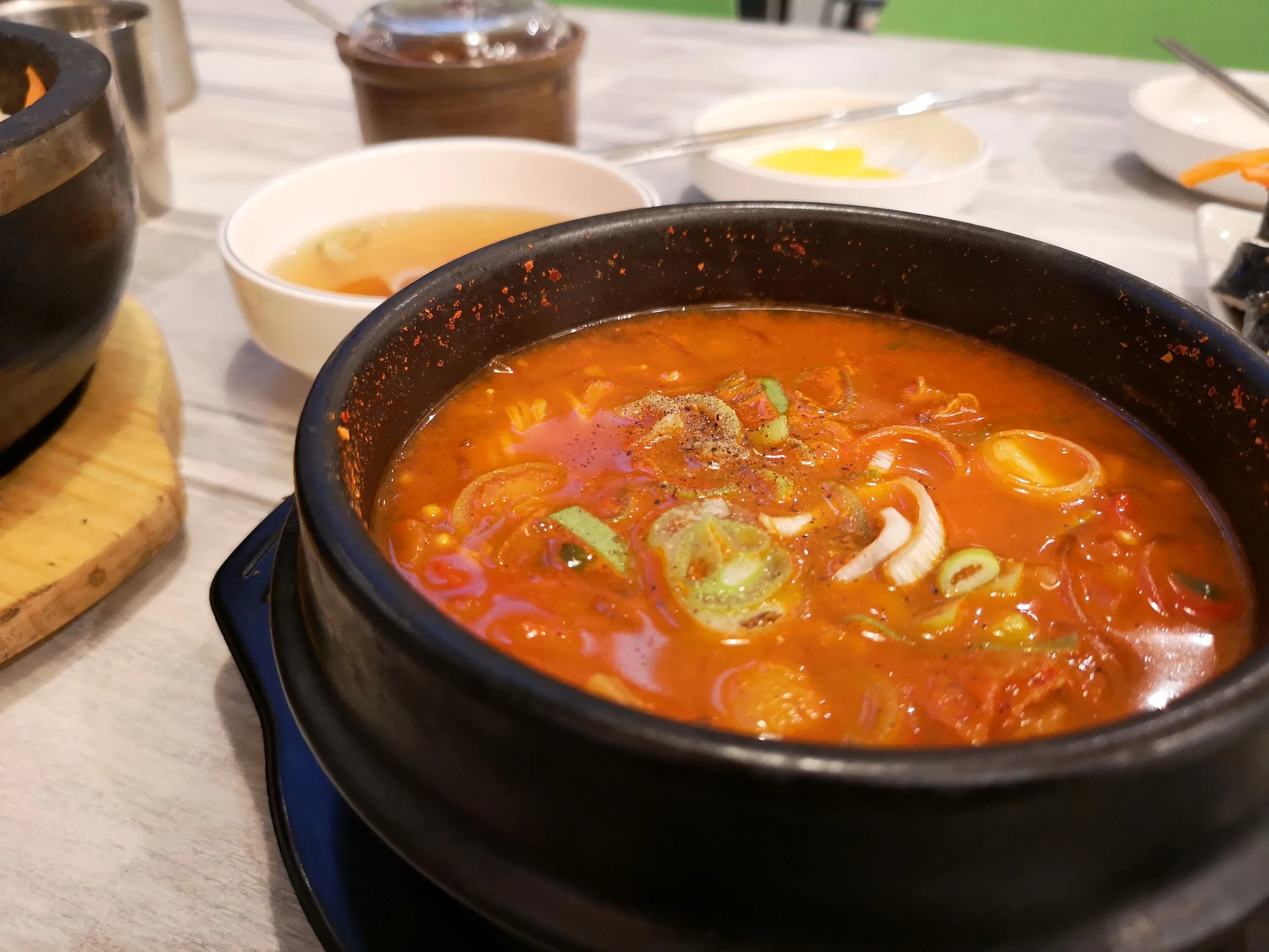 I headed there with my girlfriend on a day where we were both considerably hungry. So we got 3 things. A main dish each, as well as a Kimbap dish which we shared. I ordered a kimchi jjigae with pork, and my girlfriend ordered a traditional Bibimbap!