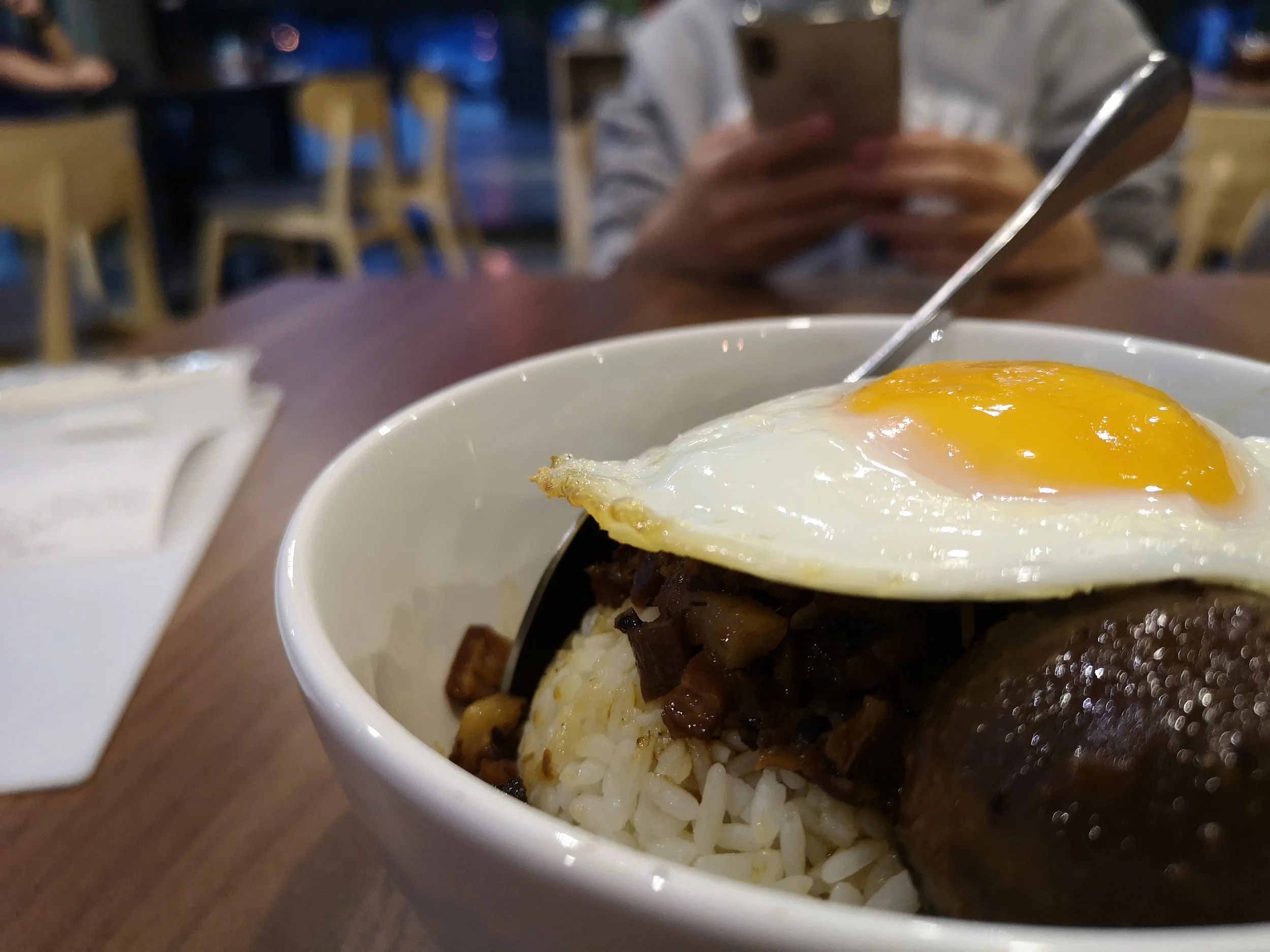 I almost wish there was more meat inside my rice. I will admit this is a tasty bowl of braised pork rice, but the amount of meat is a little on the more stingy side. I feel like I’ve had a few other lu rou fan with more meat in hawker centers, but I will make do. They have 2 eggs in this dish if you add the one with sunny side up - the sunny side up and the tea egg. The tea egg is meh - so the star is definitely the pork.