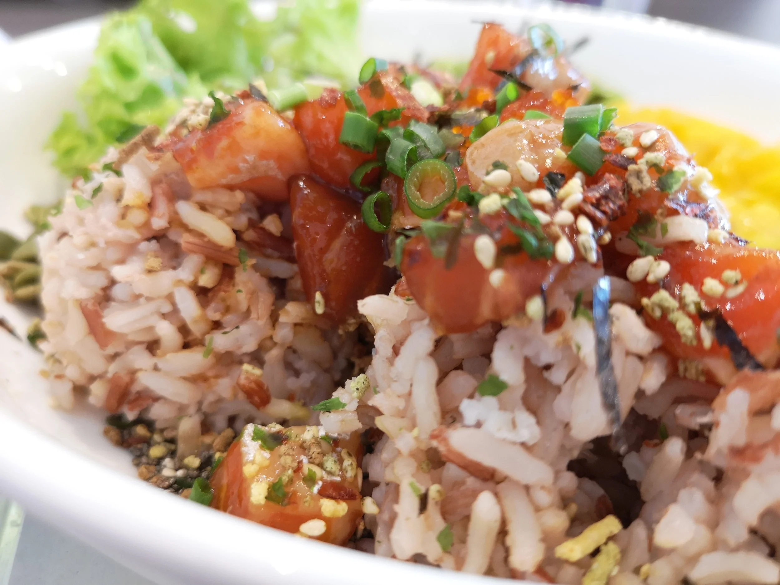 Salmon/Tuna Poke Bowl: RM18.90 (+1.5 I belive if you want the fish seared)