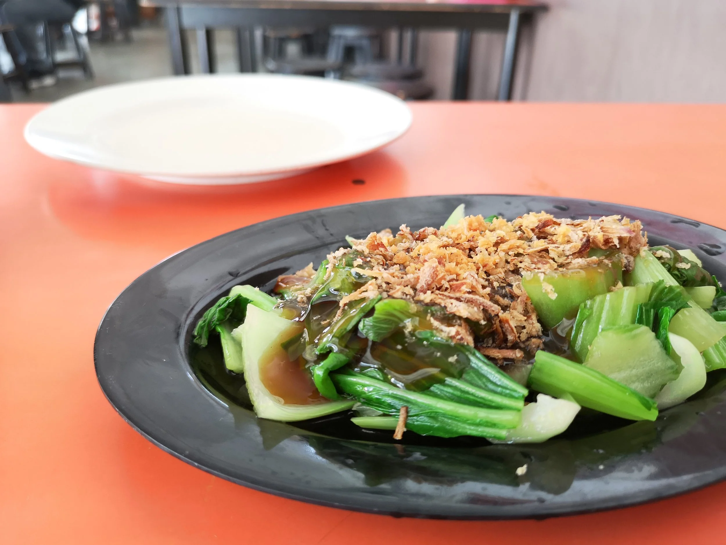 This is a place that gets cheaper with more people. The idea is that you have a claypot meat (with or without rice - you can get white rice separately) that ideally you share with others, and have some vegetables and some otak-otak to share as well - so you get a really full meal. I think having just the claypot chicken rice is a bit meh for health reasons, as I like having some vegetables to go with it.