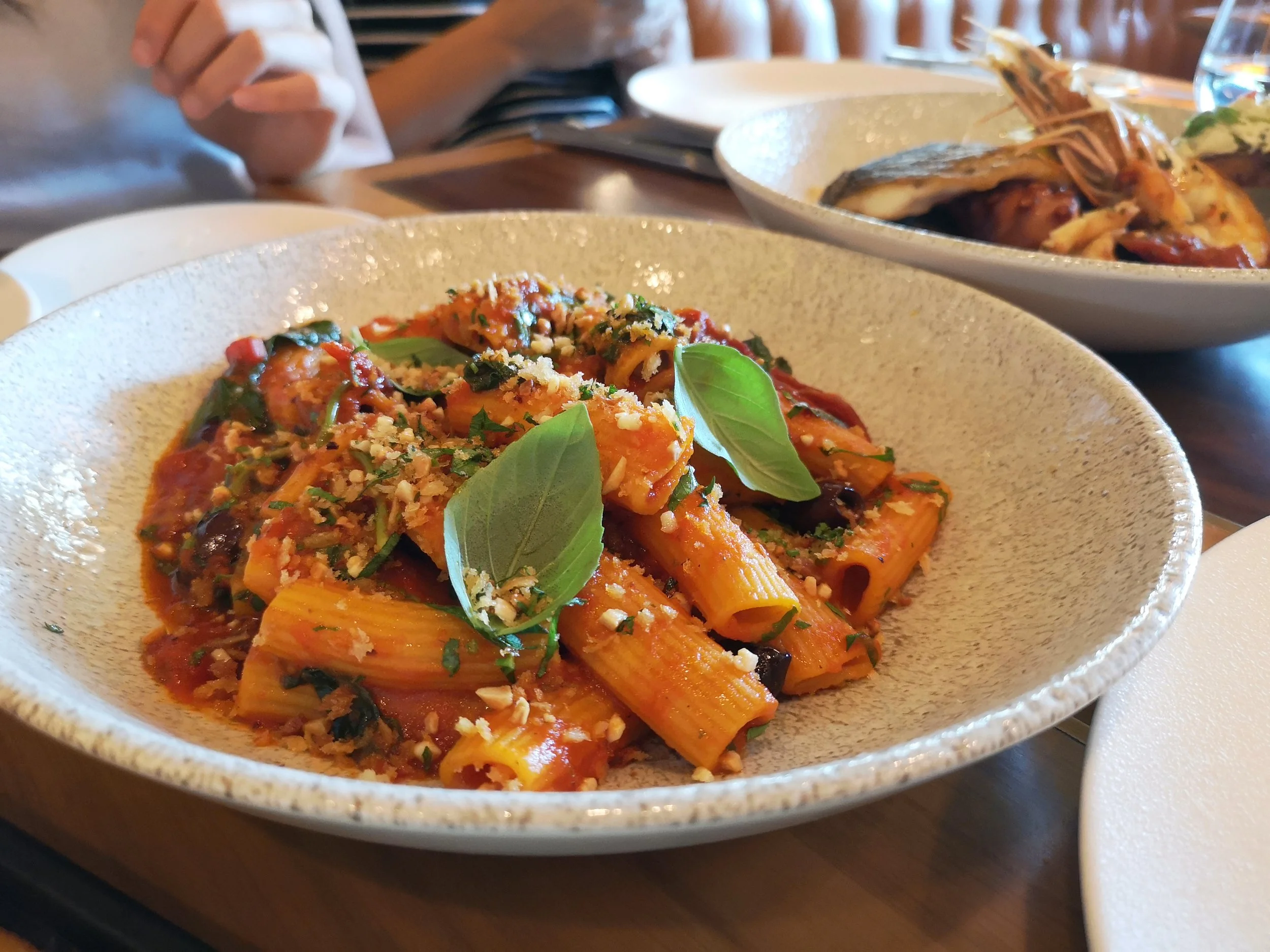 Last for the mains, the rigatoni. Just a nice pasta overall. Got a nice spice to go with that tomato base, so this is just a good, old-fashioned, hearty bowl of delicious pasta.