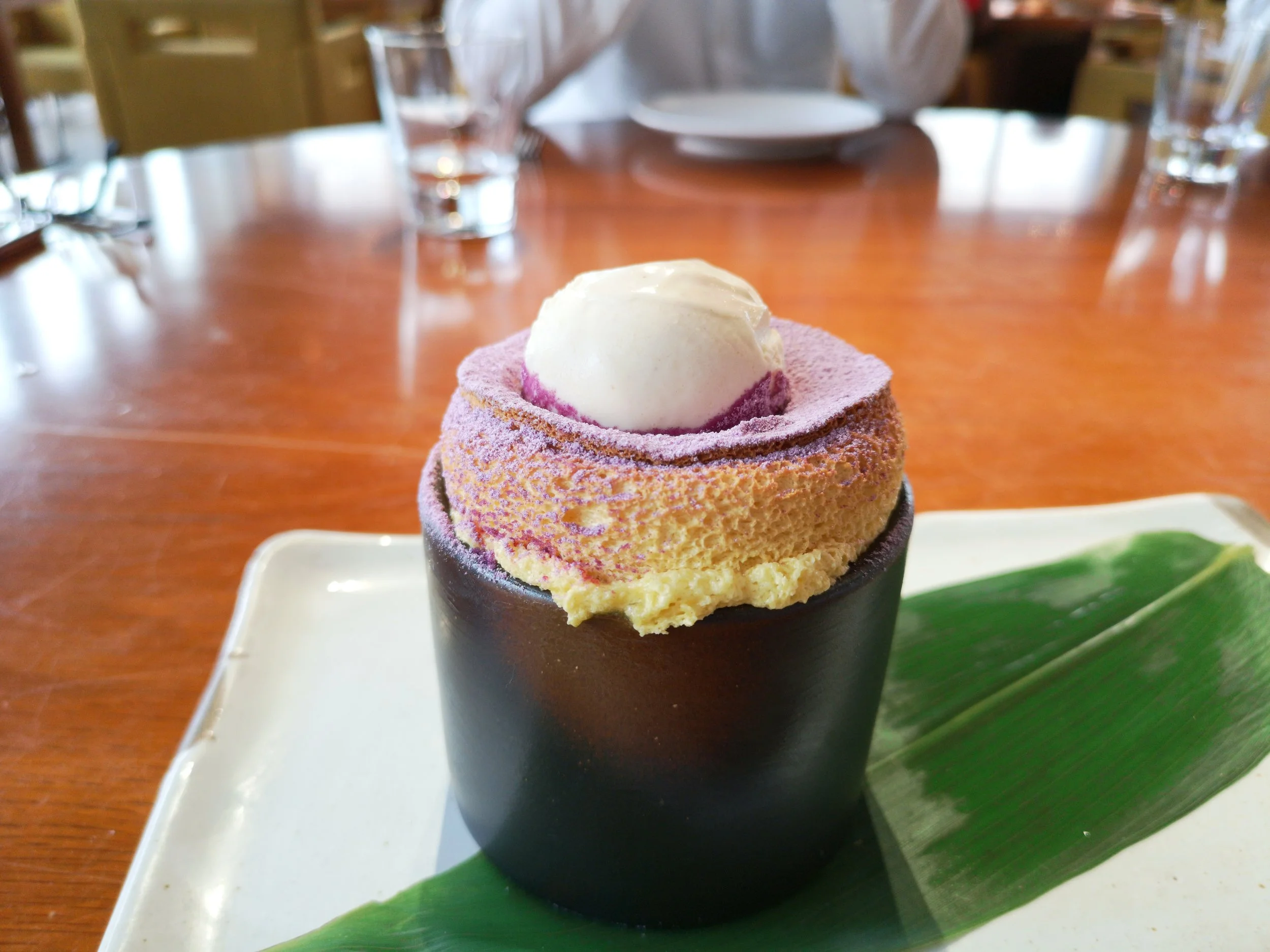 For desserts we got 2 - and this one is great because you save extra money by getting a dessert. I believe a-la-carte they are more than AED 60, but with the set lunch, you can get desserts for AED41! We got the Passionfruit Souffle with Ice Cream and the Hokkaido Milk Ice Cream.