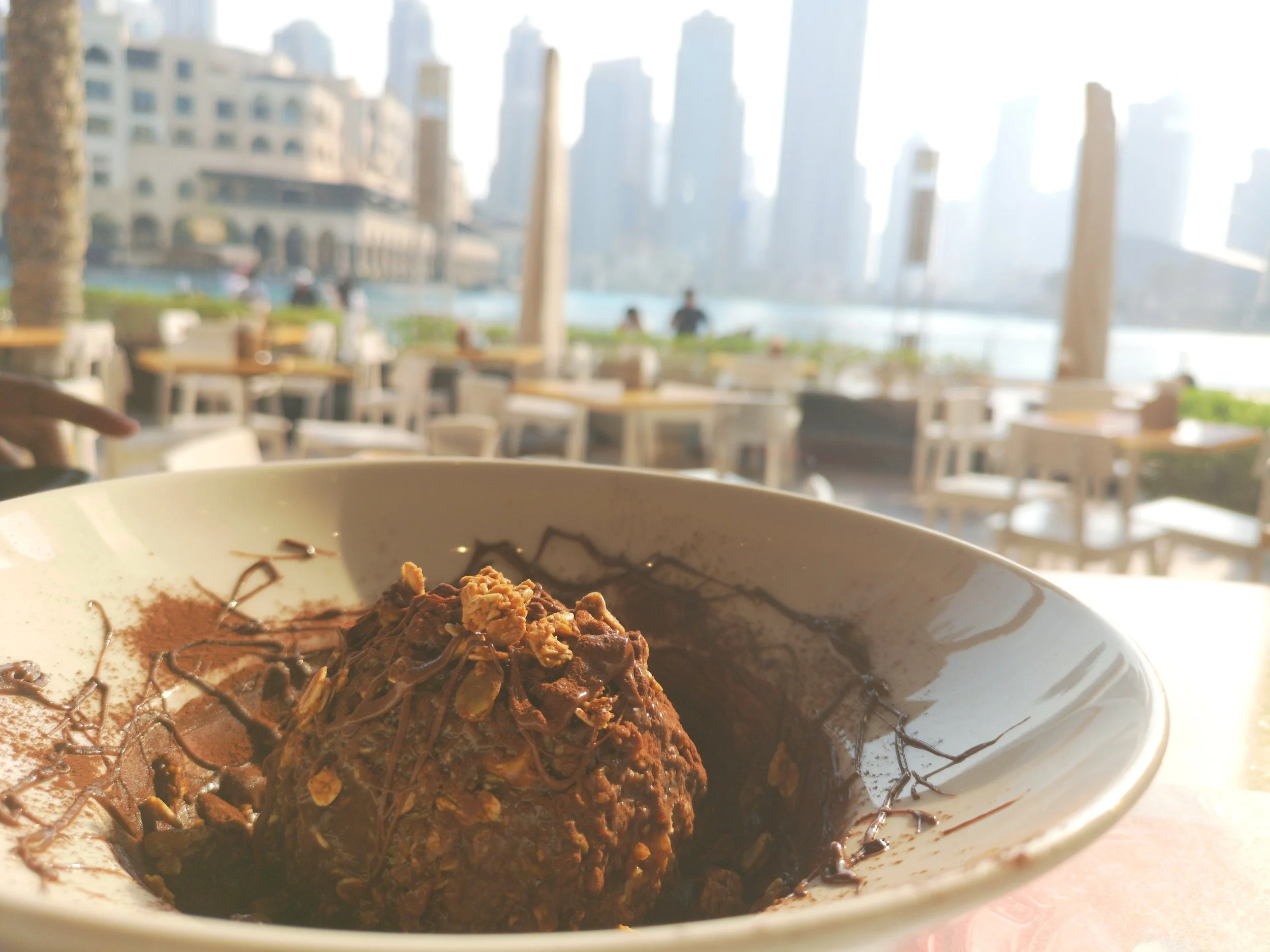 It is located in on the lower ground floor in Dubai Mall, near Five Guys. Other stuff on this floor include Eataly, California Pizza, etc. Parking is free in Dubai Mall, but sometimes it is disgustingly hard to get a parking in this mall, so just be a little wary about that. The plus point about this would be that you have a beautiful view of the Dubai Fountain - which is especially nice in summer because it is too darn hot to be outside.