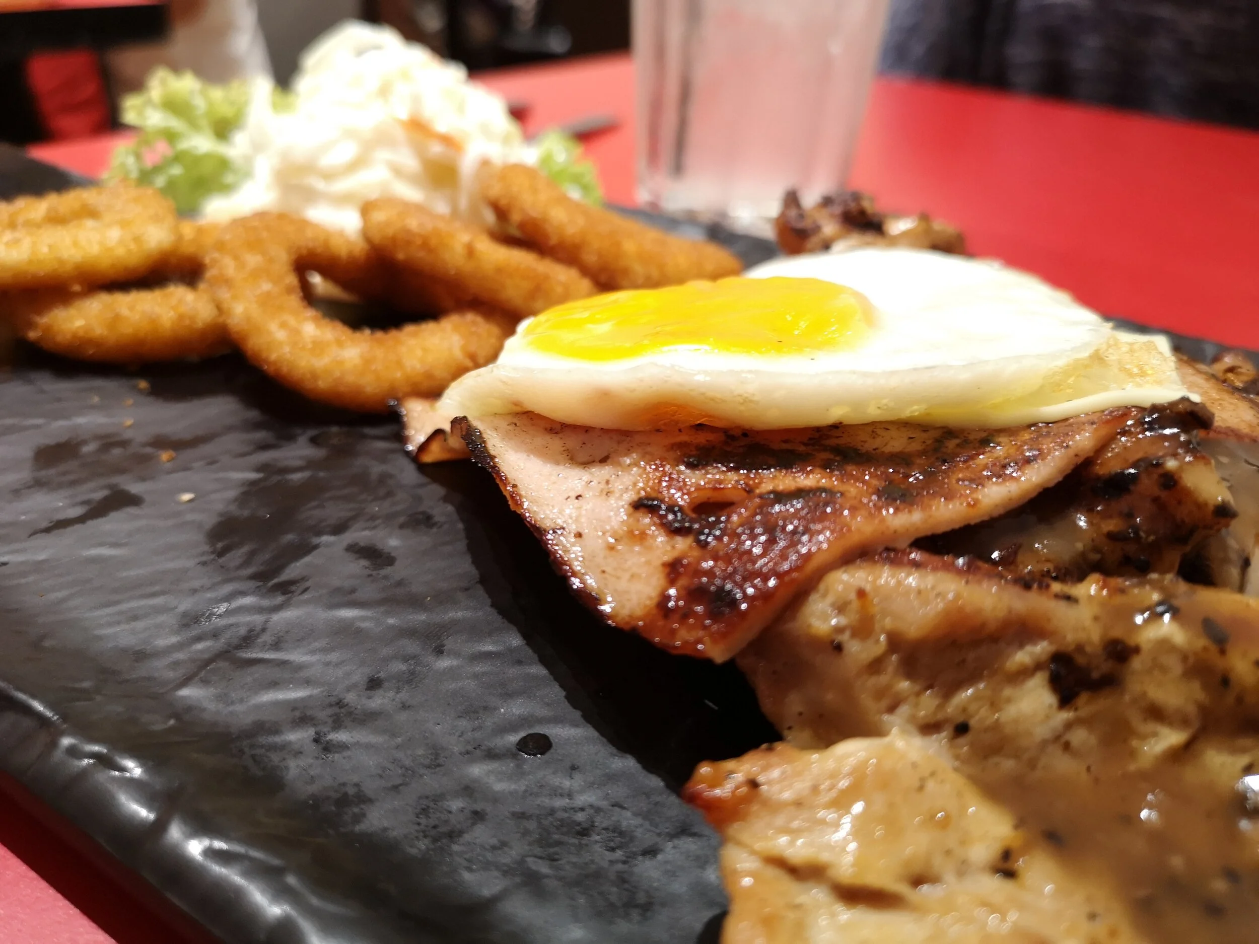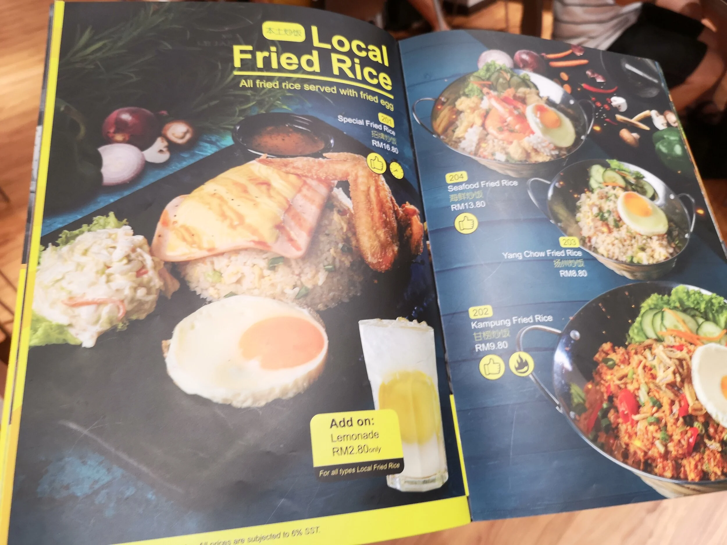 But ultimately we shared 2 mains and an add-on drink - top up on top of the main - to share. We had a Yang Chou Fried Rice (RM8.90) and a Black Pepper Ham & Egg Grilled Chicken Chop (RM17.80) with an additional Iced Lemonade (top up RM2.80 with the fried rice). No tax, and and that’s how it adds up to RM29.40.