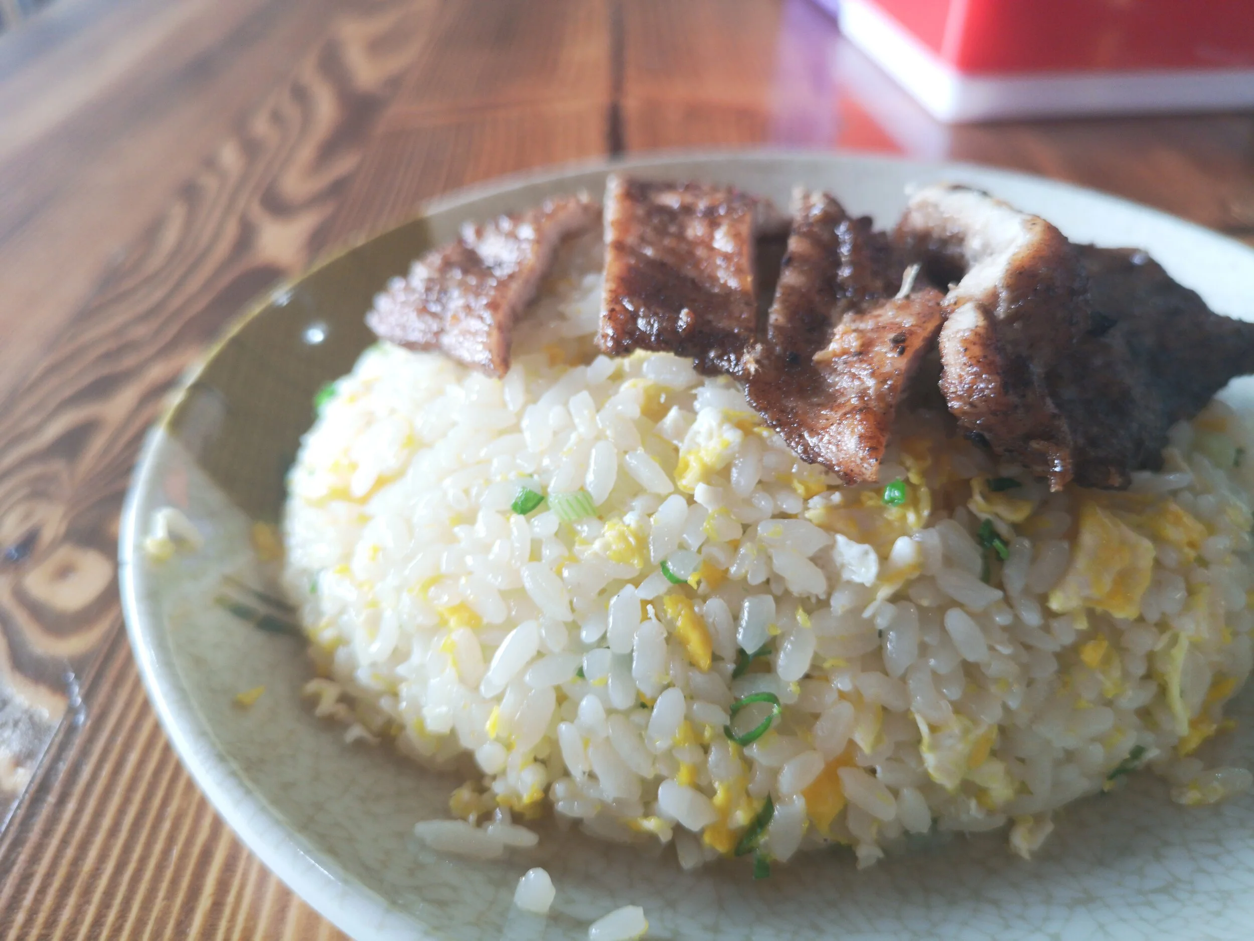 6.5/10. Would probably score it higher if the portions were a bit bigger and there was more meat on the plate, so I think 6.5/10 is a good place to be. Still a nice plate of fried rice that you would have no complaints about for lunch.