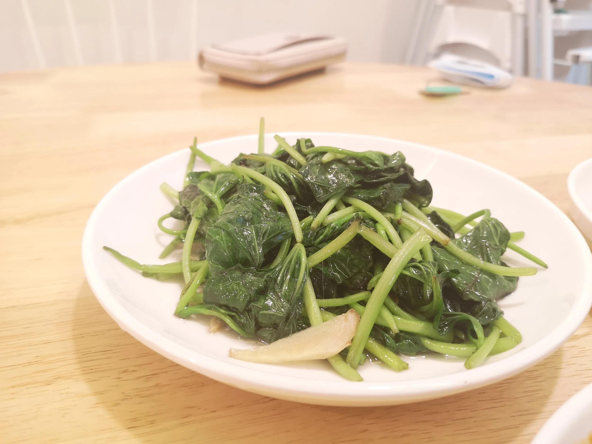 Sweet potato leaves is what it is: steamed sweet potato leaves so probably not worth talking too much there.