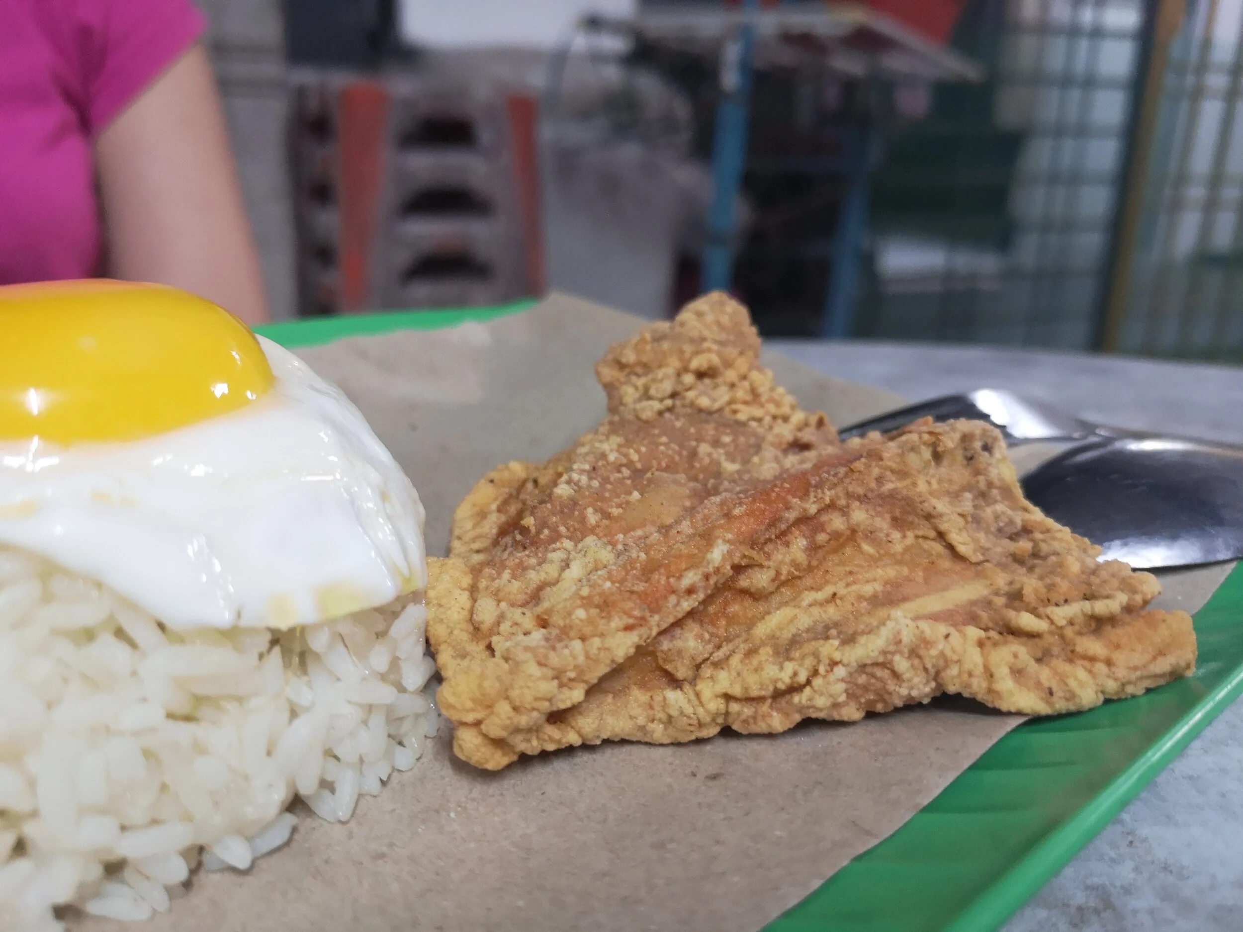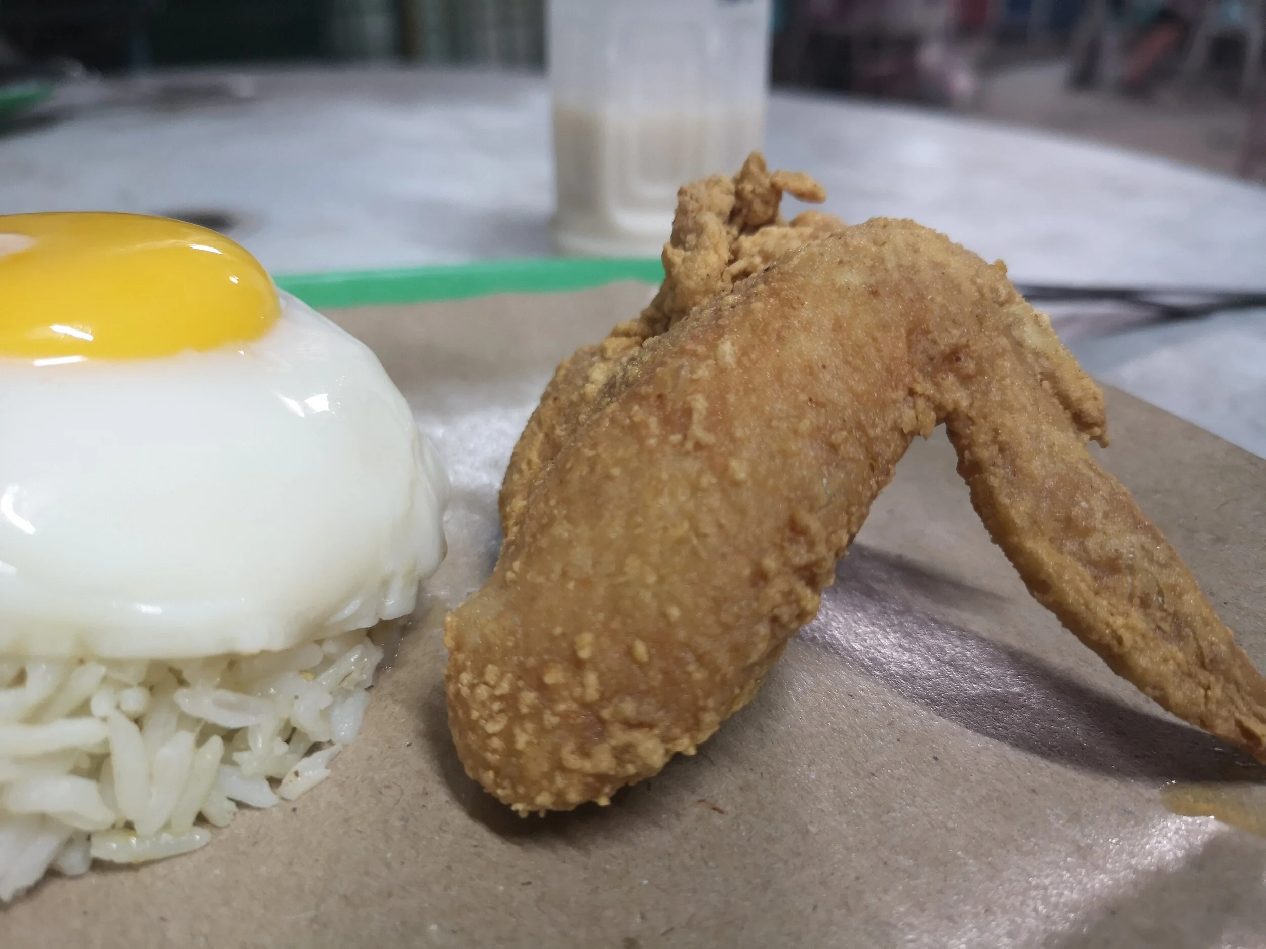 This set would be RM7. But if you would like an a-la-carte main, that will be RM5 and fried chicken (1 piece) would be RM4. An extra egg is RM1 and upsizing your main would be RM1.