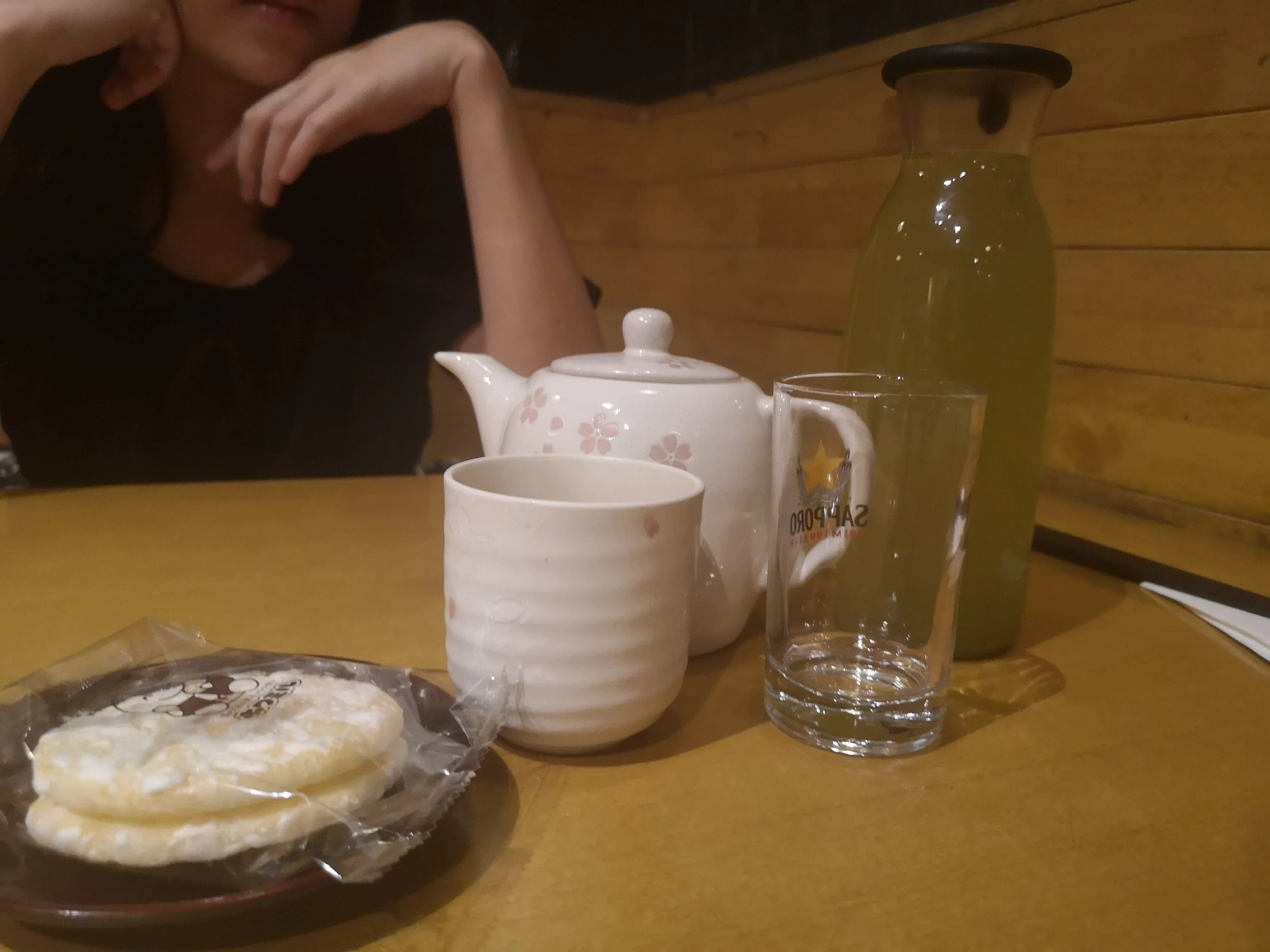They start off with a savoury Japanese biscuit as a small snack for waiting for your food.