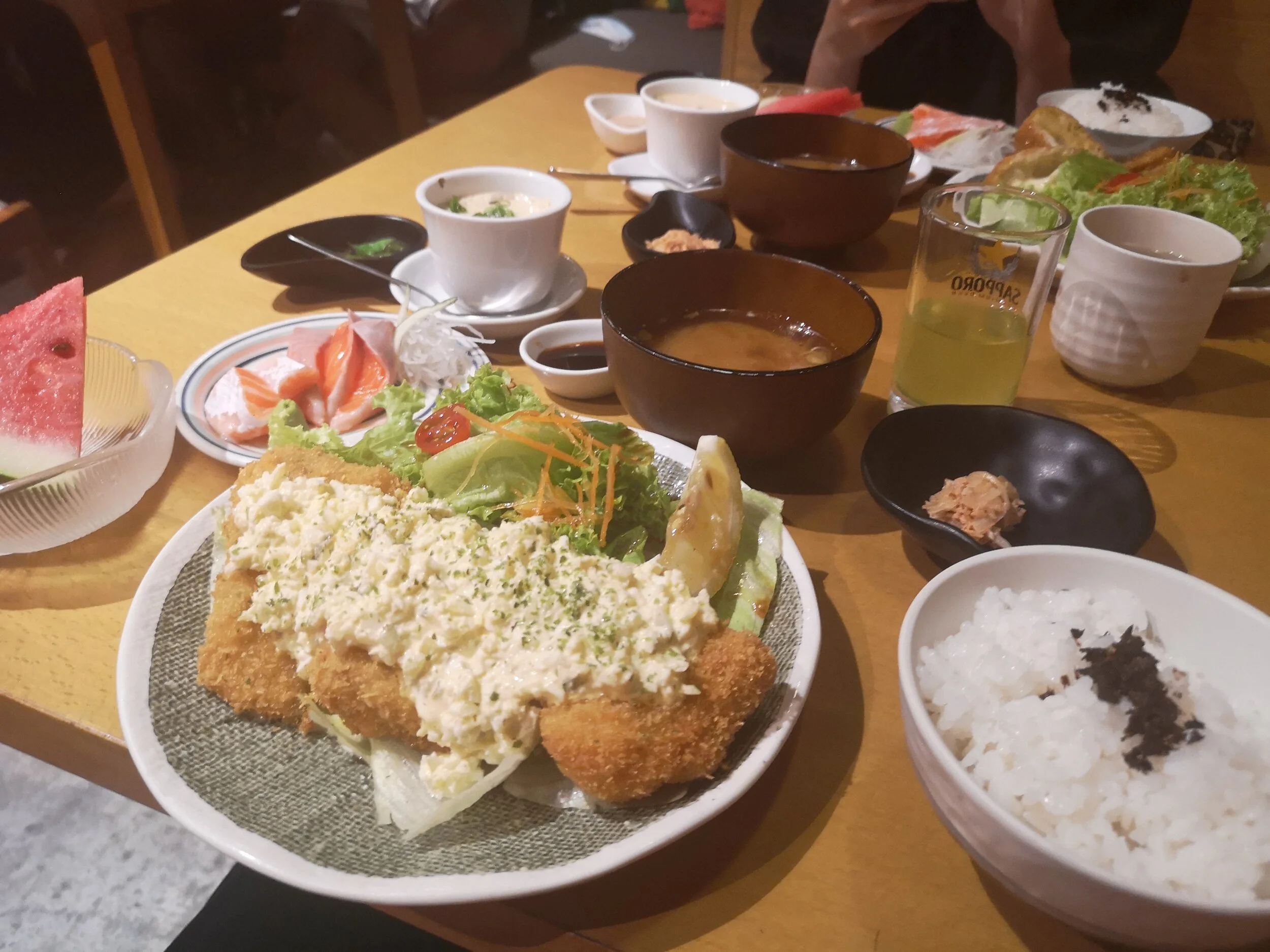 I had more of the Deep Fried Fish & Salmon Sashimi set (RM42.40) whilst my girlfriend wanted the Ham Katsu, Croquette & Salmon Sashimi Set (RM42.40). The rest of the bill is made up of ocha, service tax, etc. but that’s the rough maths behind the dinner.