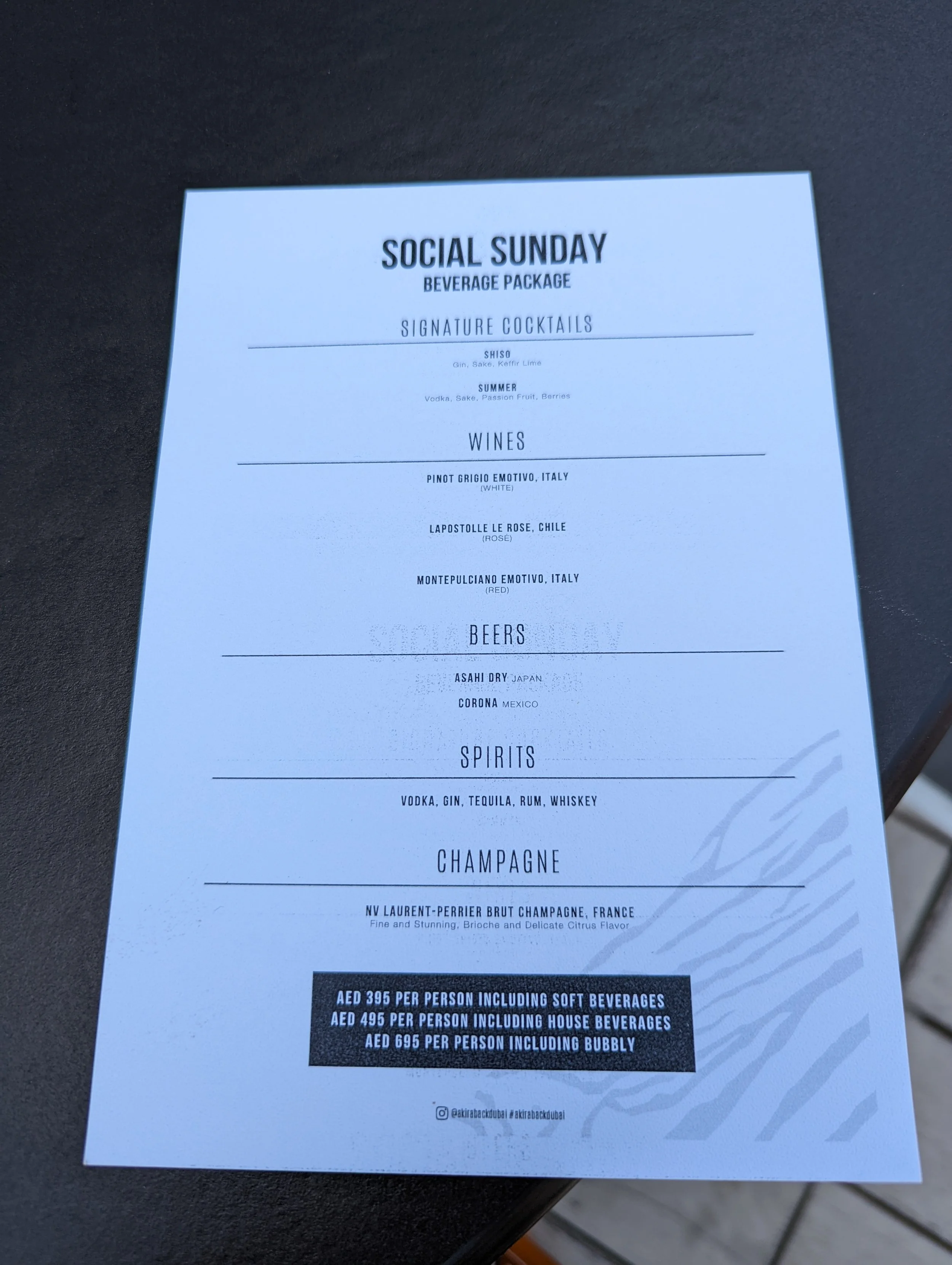 AED695 including bubbly