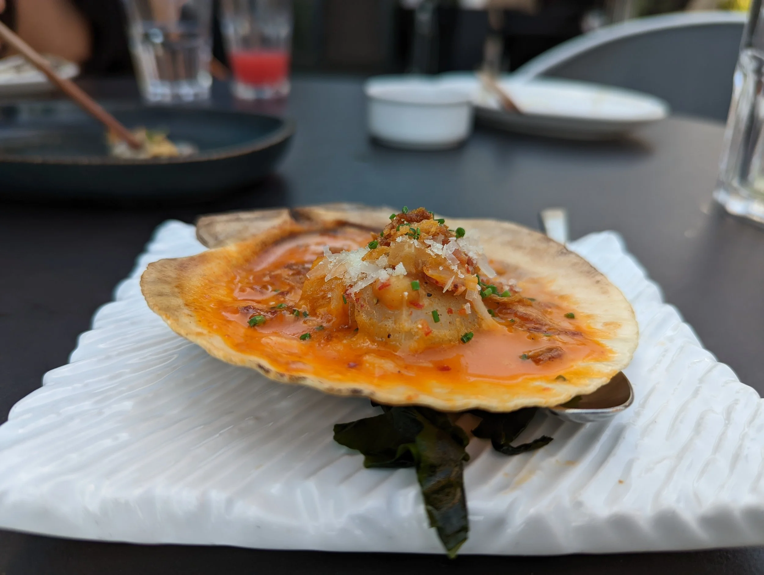 Scallops on the Half Shell #10: You have a spicy combination of kimchi, veal bacon, and gochujang butter elevating a couple of pieces of the scallop. I think the flavors of this dish could be on the stronger side, but otherwise, it’s still a decent dish.