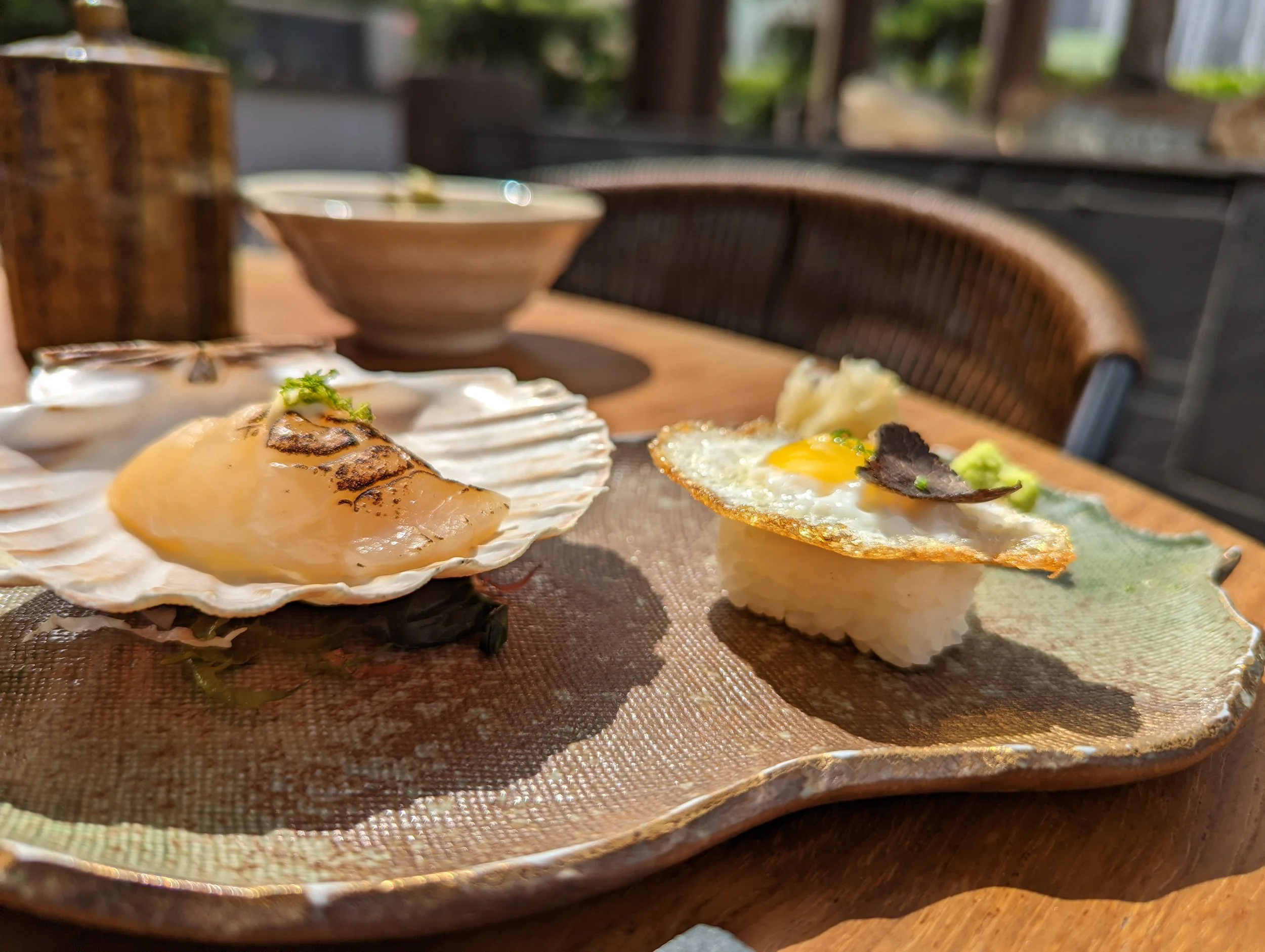 Then, you have the scallop flambe nigiri (hotate with yuzu mayonnaise) & their quail egg nigiri (with black truffle). Honestly, I think that the quail egg nigiri is SO PRETTY. It’s such a showstopper if you ask me. The taste isn’t particularly exceptional - I’m more a fan of fish/tamago style nigiris - but it’s still pretty interesting to see and taste. The scallops are decent as well.