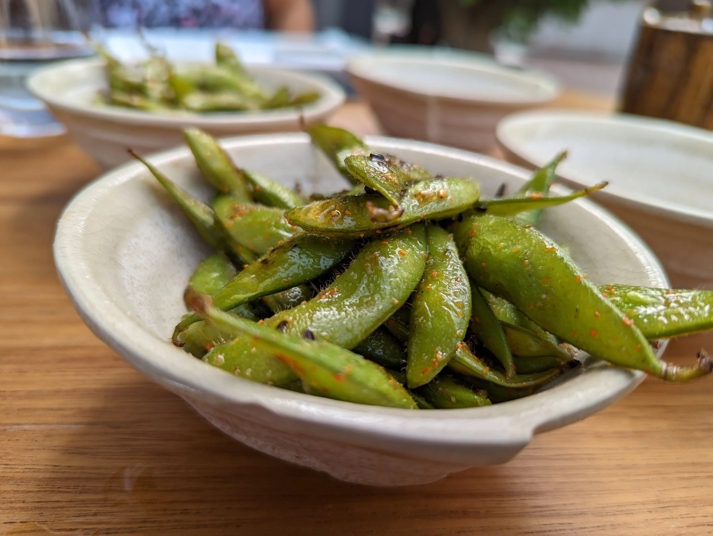 The edamame is really elevated from simple finger food to a really umami, really sophisticated finger food that you can’t stop eating. They do it with the help of Kobe wagyu fat, shichimi togarashi (Japanese chili flakes), & truffle. Seriously, this dish is one of those finger foods that you can’t stop eating.