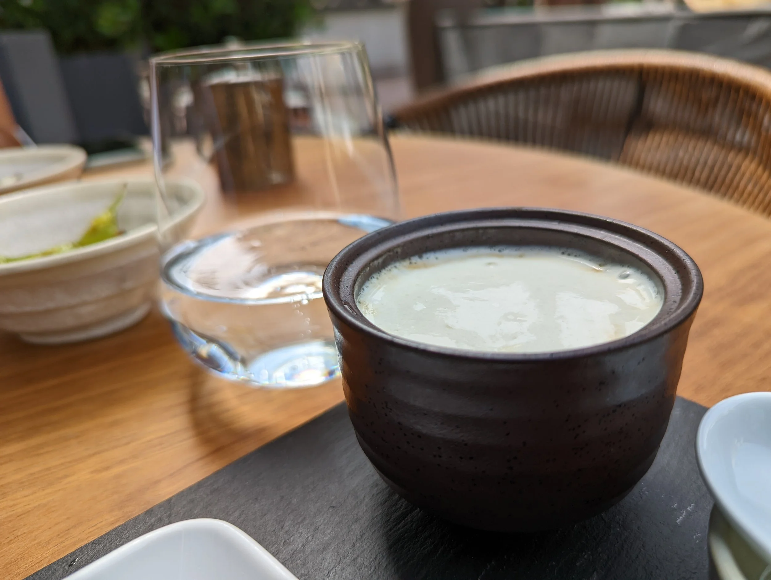 Their CapuMiso soup (I’m not sure what word Capu refers to) is so freakin’ yummy. And it’s all because of that layer of decadent fermented soy with seaweed, truffle, leek, and tofu foam on top. Seriously, that foam has a nice saltiness and almost fluffy texture that really takes this miso soup over the top and transforms it into something really, really good.