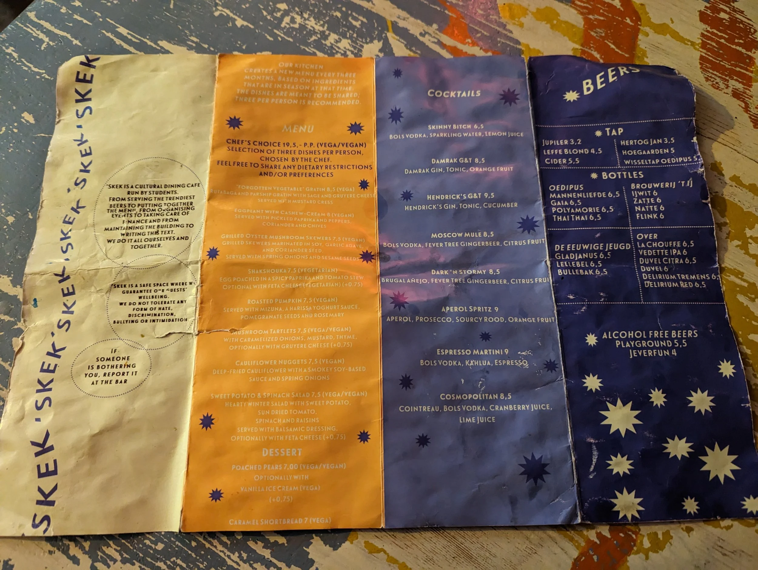 I was in Amsterdam a week ago for the Keukenhof tulip festival and one of the most worth it meals was at Cultureel Eetcafe Skek! This is a student-run cafe that has the vibes somewhere in between a boardgame cafe and a lively pub.