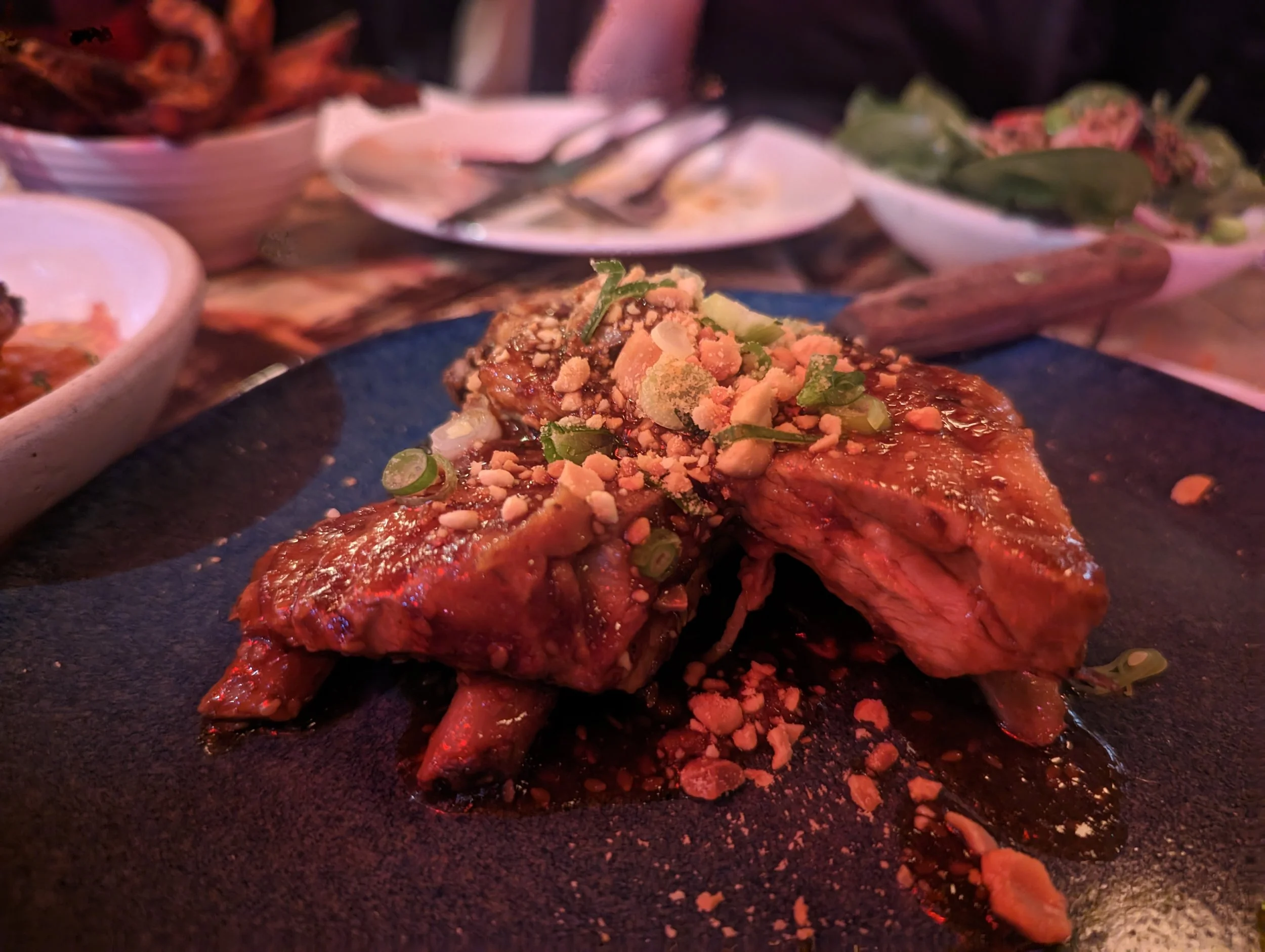 PACHAMANCA PORK RIBS - Slow-cooked baby back ribs with Yakiniku sauce and roasted peanuts (n)