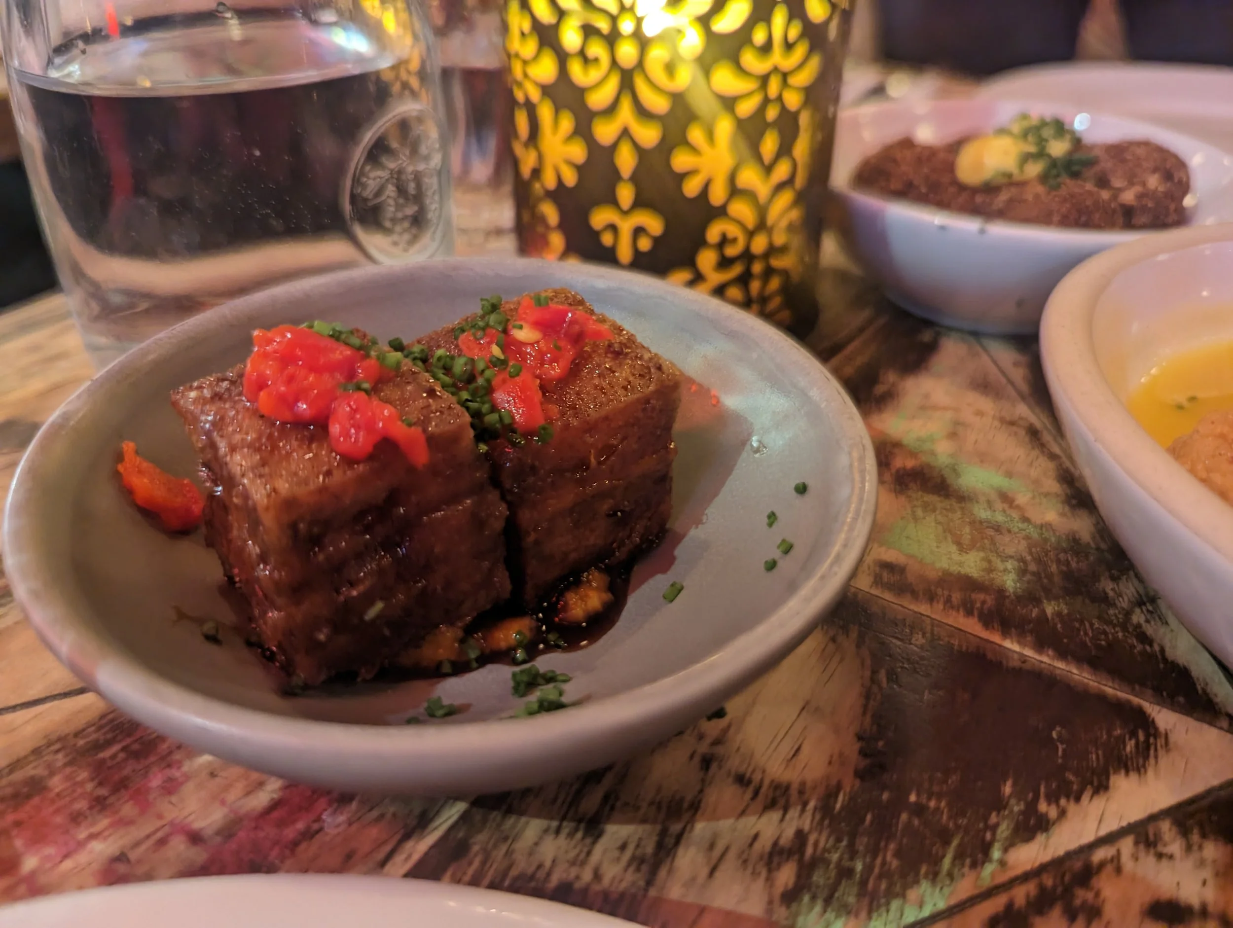 My favourite among the starters (and arguably the whole meal) was the pork belly. I hate to make the comparison to Chinese cooking - but I naturally do, being Malaysian Chinese - but it somewhat resembles Chinese style pork belly but of course having its own quirks. The pork belly skin is super crispy but the meat is just oh so tender and melt-in-your mouth. I seriously thought it was so good!