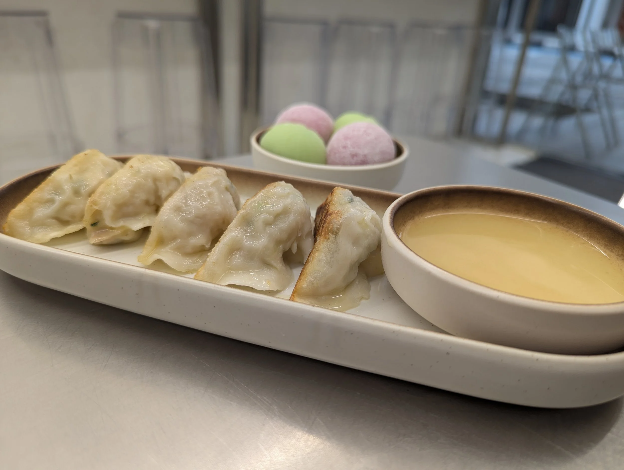 You’ll also get a side (chicken gyoza), green tea (for two), and four pieces of mochi, so I would say for RM28 per person, it isn’t cheap, but it isn’t expensive. But I do think that their monthly special udon offerings also look really interesting most of the time—we didn’t try because we got the set, but they have offerings like their CCC (Creamy Coconut Clam Udon).