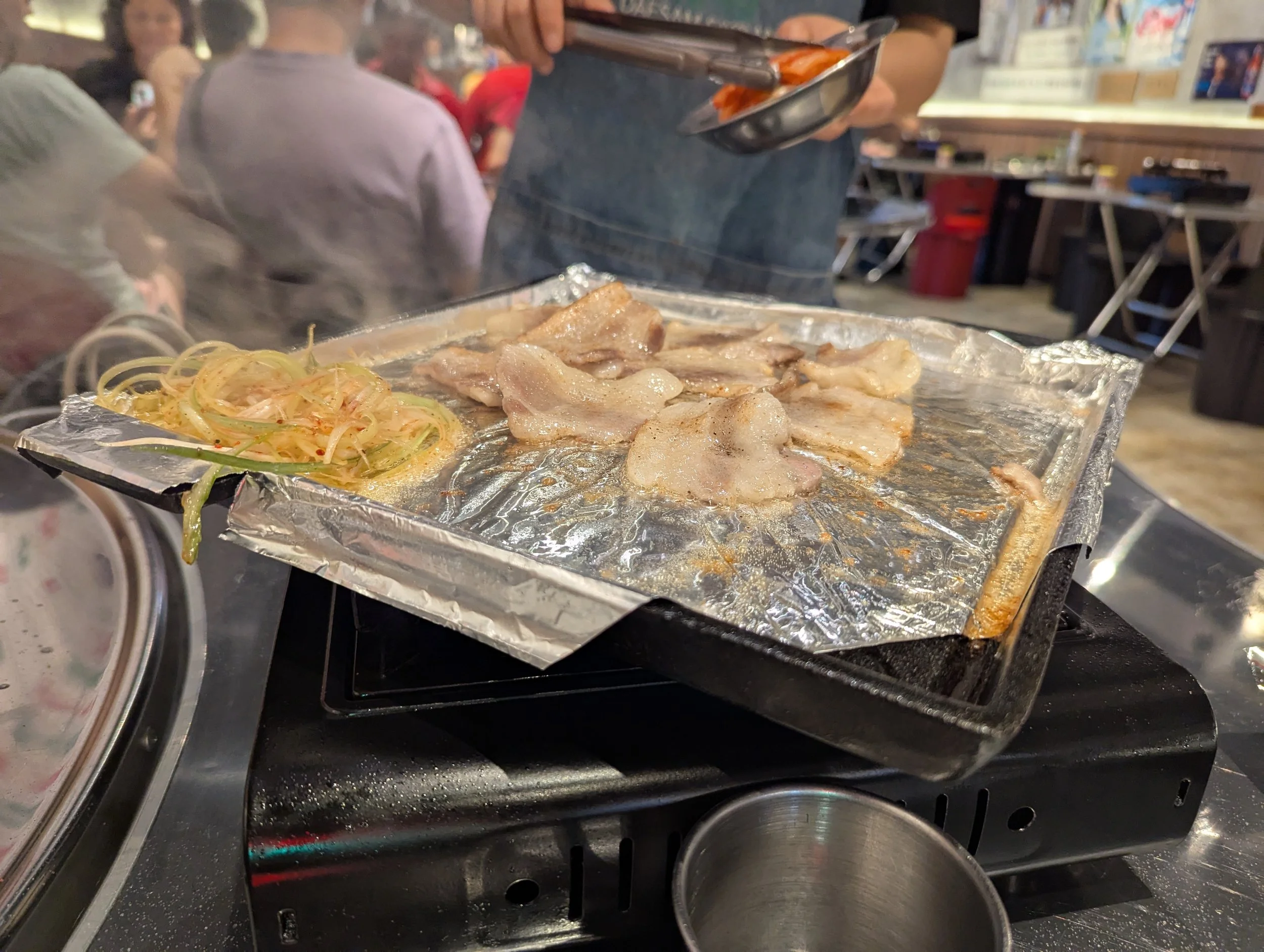 I personally think that serving for the frozen pork was a bit smaller that I expected. I would say it is not that fatty, but I would also say it didn’t really stand out particularly. Nothing too out of the ordinary compared to normal pork belly. But pretty good nonetheless with all the banchan and the lettuce.